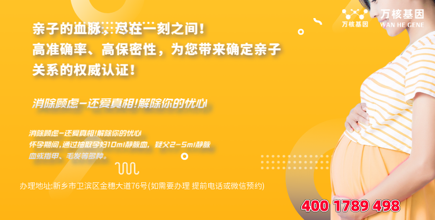 新乡卫滨产前无创亲子鉴定办理地址:新乡市卫滨区金穗大道76号(如需要办理 提前电话或微信预约)-预约电话:4001789498,新乡卫滨服务地区包括:红旗区、卫滨区、凤泉区、牧野区、新乡县、获嘉县、原阳县、延津县、封丘县、卫辉市、辉县市、长垣市等周边城市,可在线咨询:产前无创亲子鉴定、司法亲子鉴定、移民亲子鉴定、入户亲子鉴定、中考亲子鉴定、高考亲子鉴定、个人隐私亲子鉴定等等咨询服务。